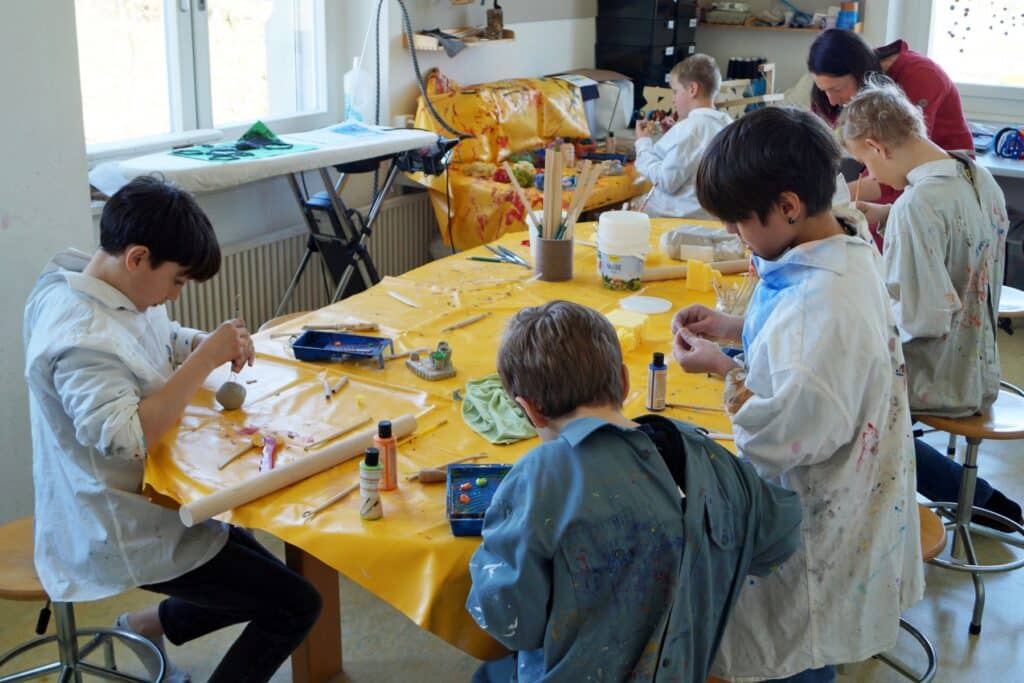 Dabei entstand ein farbenfrohes Gemeinschaftsbild. Überall halfen sich die Kinder gegenseitig, so entstanden nicht nur tolle Ergebnisse, sondern auch das gemeinsame Arbeiten trug spürbar zum «Prima Klima» bei.