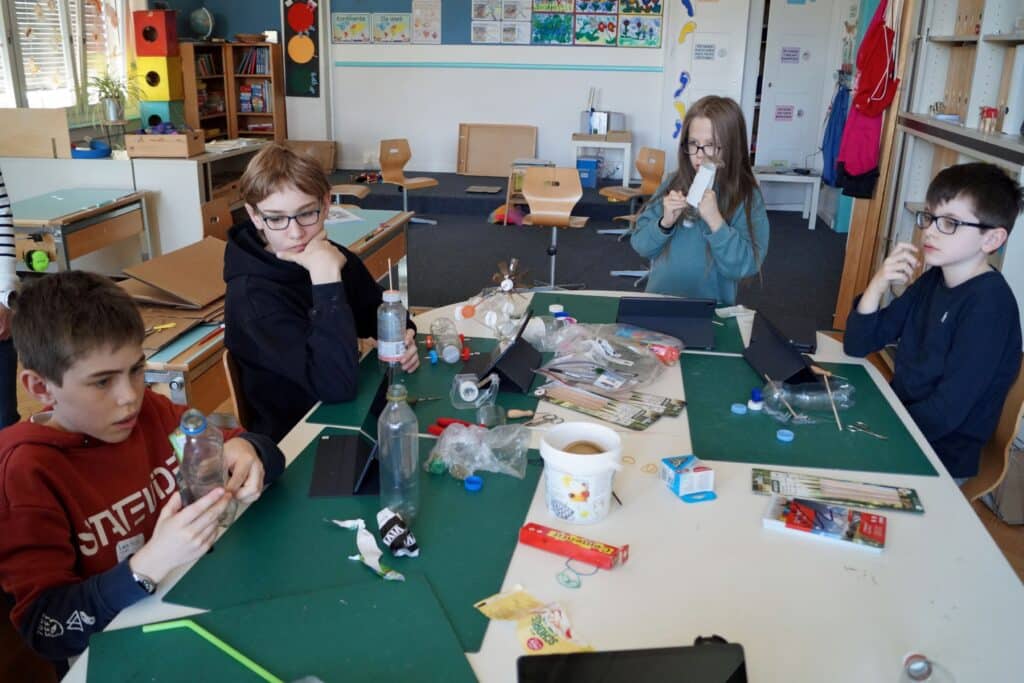 „Im Wald haben wir einen Autoreifen gefunden und zur Schule gebracht. Wir haben ihn geputzt und wollen etwas daraus bauen.“